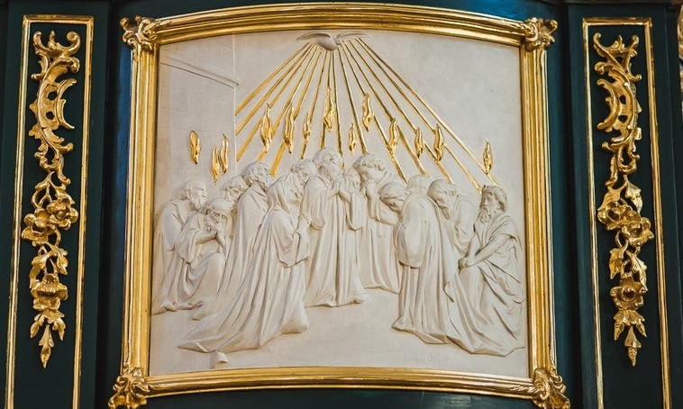 Nadszedł kolejny ważny dzień – Pięćdziesiątnica; „znajdowali się wszyscy razem” – trwali w oczekiwaniu, jak obiecali… „Nagle spadł z nieba szum… ukazały się im języki jakby z ognia”. Na tym niezwykłym, pięknym tle dokonał się cud; „wszyscy zostali napełnieni Duchem Świętym”, „mocą z wysoka”, by sobie „przypomnieli wszystko, co im Jezus powiedział”, całą Dobrą Nowinę i nieśli ją „aż na krańce świata”. Usłyszeli to przedstawiciele „ze wszystkich narodów pod słońcem” – na razie w Jerozolimie, ale wnet usłyszą ją u siebie. Stało się – Królestwo Boże na ziemi zaistniało i będzie rosnąć, „a bramy piekielne go nie przemogą”.